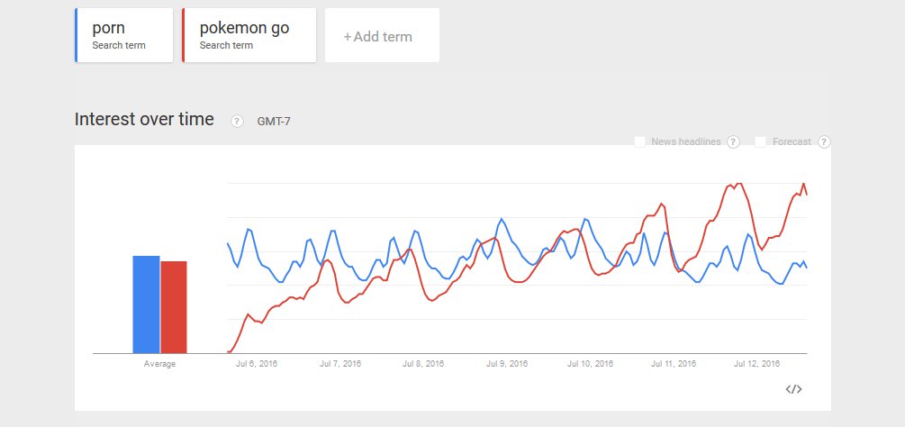 ポケモンGoが配信されてから、ポケモンGoは「ポルノ」よりも多く検索される言葉になってしまいました。